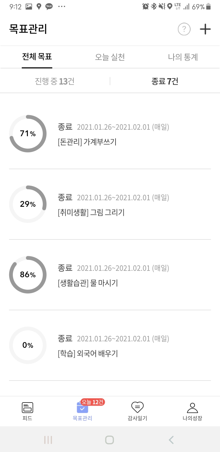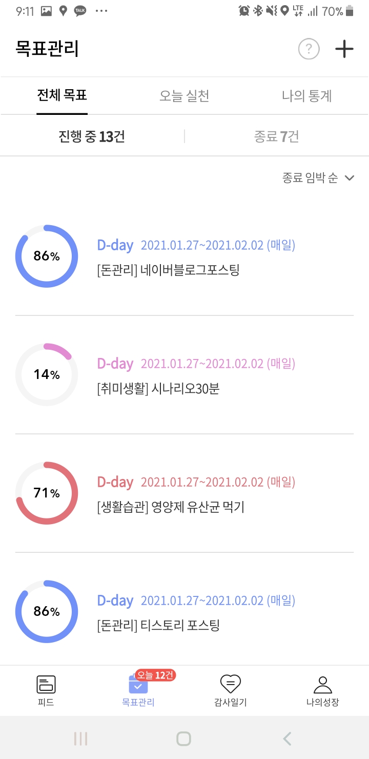저는 현재 13개의 목표가 진행 중이고