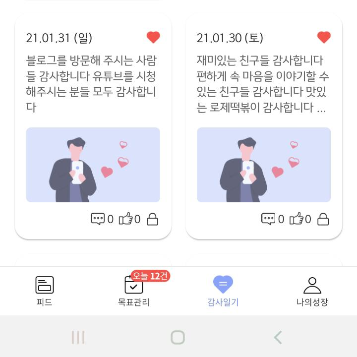 다른 사람의 목표나 감사일기를 보면