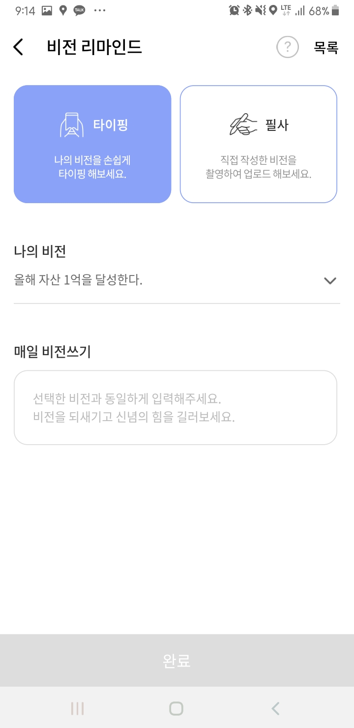 나의 비전을 설정하고 매일 그 비전을 따라 쓰는 기능인데