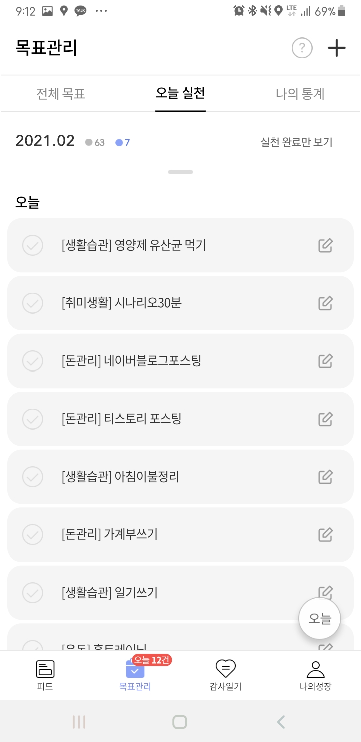 오늘 실천으로 가면 오늘 해야 될 목표들이 나옵니다!