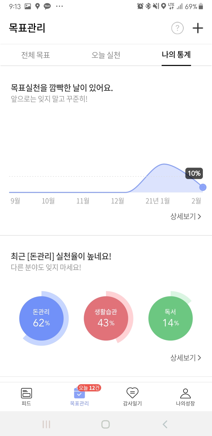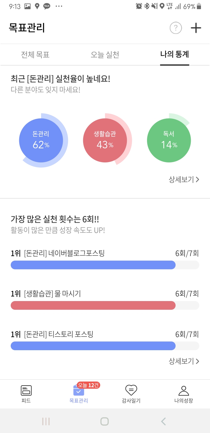 내가 어느 분야에 얼마만큼의 목표가 있는지 확인할 수 있는데요.